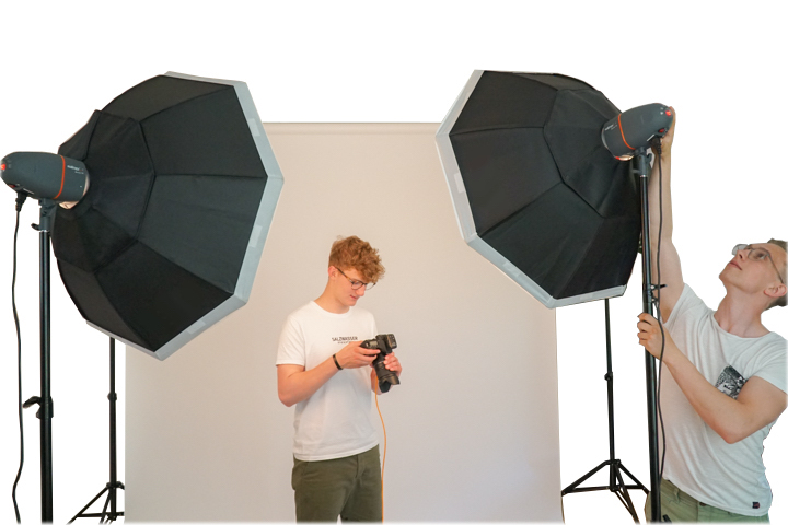 Hier entstehen die feierlichsten Bilder des ganzen Abends. Wir verwandeln einen kleinen Raum oder eine Ecke deines Abiballs in ein Fotostudio. Hier knipsen wir vor allem Abiturienten mit deren Familienangehörige, Lehrer und Freunde. Für hochauflösende Beispielbilder schreib uns doch einfach hier.